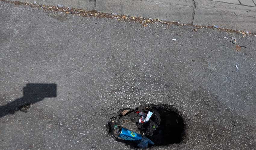 Kod optike Lika, u ulici Popa Dukljanina - rupa na putu kraj trotoara.